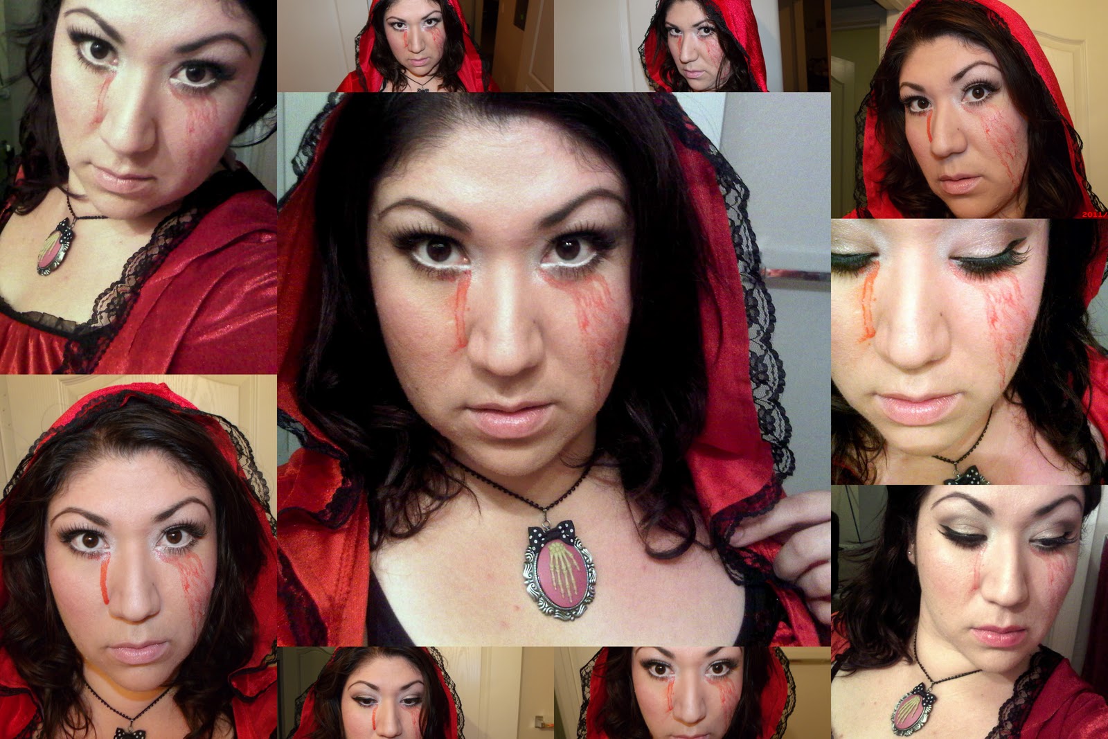 I just wanted to share my pictures for one of the 4 entries for the Rockeresque Deliciously Haunted Contest. For this look, I did not want to go all Halloweeney, so I did a neutral/dolly eye with some blood for tears.